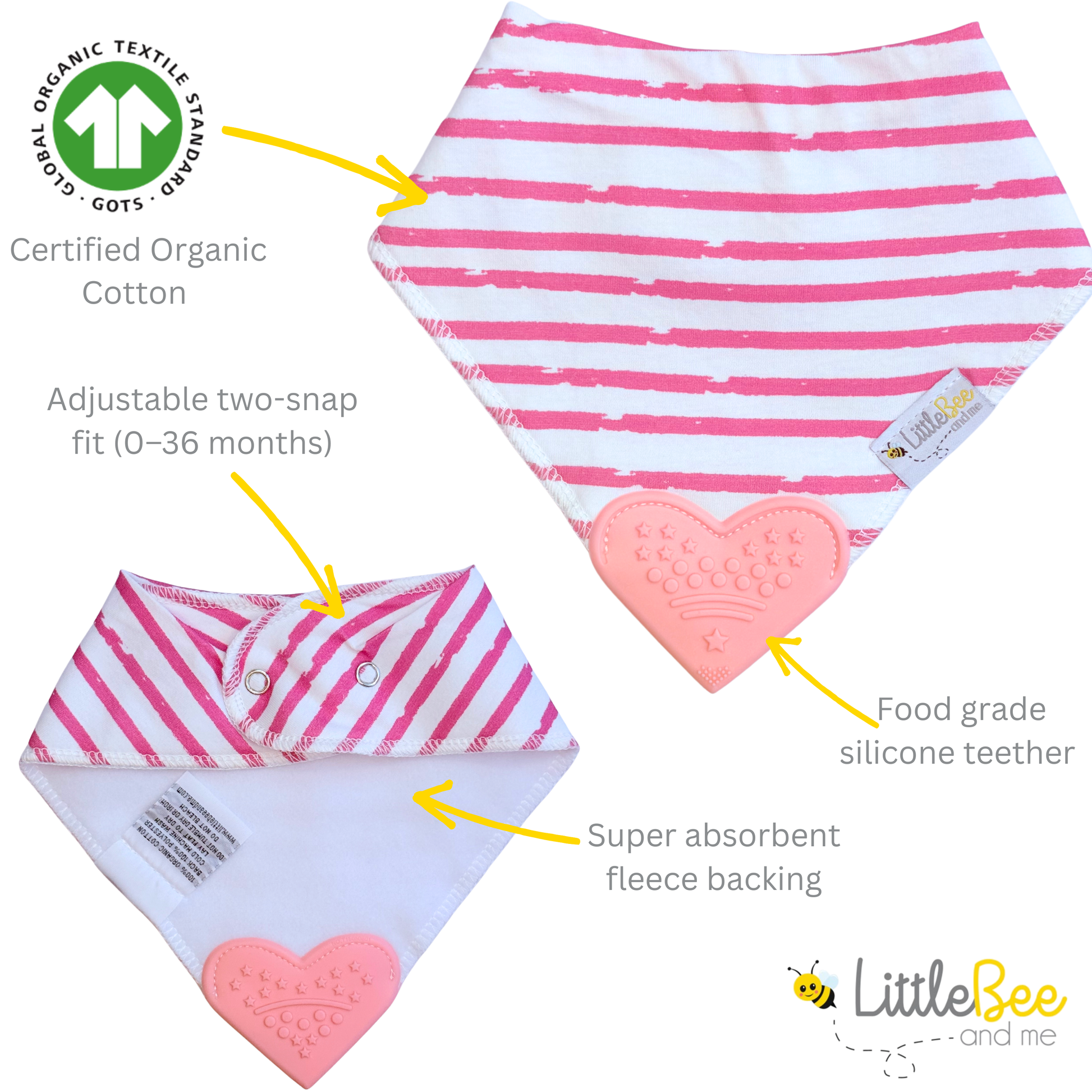 Some styles also feature an attached BPA-free silicone teether — keeping little mouths busy and no more lost teethers in the pram!